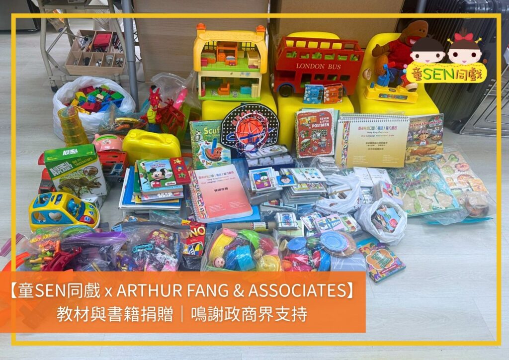 童SEN同戲感謝ARTHUR FANG & ASSOCIATES捐贈教材與書籍,熱心支持有特殊教育需要的學童及家長,教材與書籍將用於支援不同需要兒童的多元學習發展服務,以推動共創SEN友善社區®️社會服務。