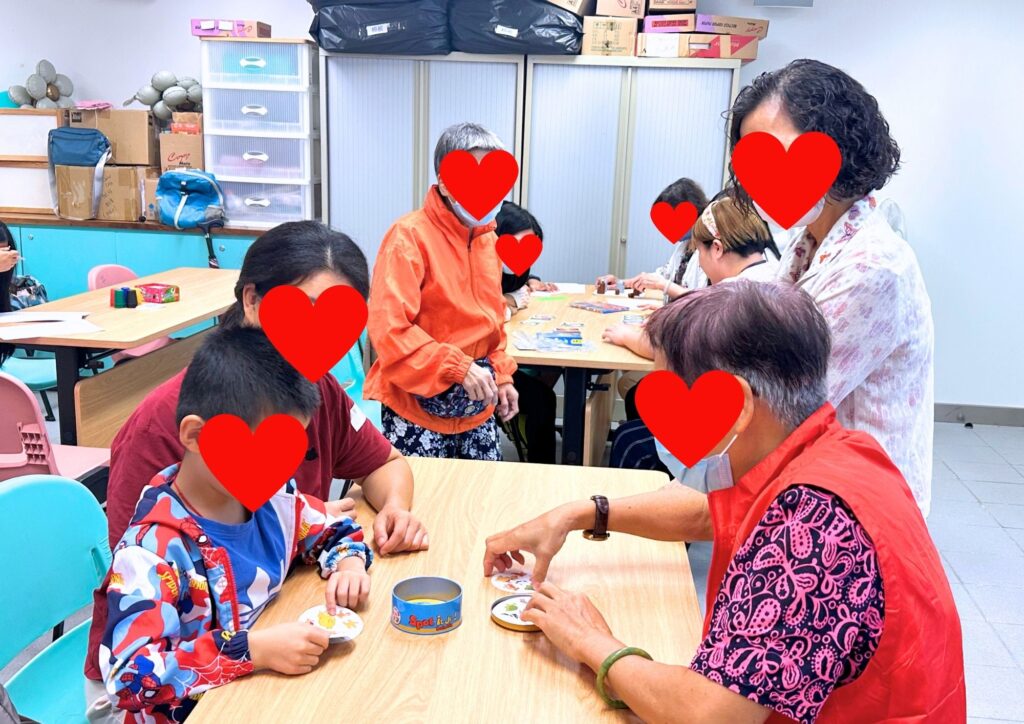 社區銀齡義工學習與有特殊教育需要的兒童進行小組活動