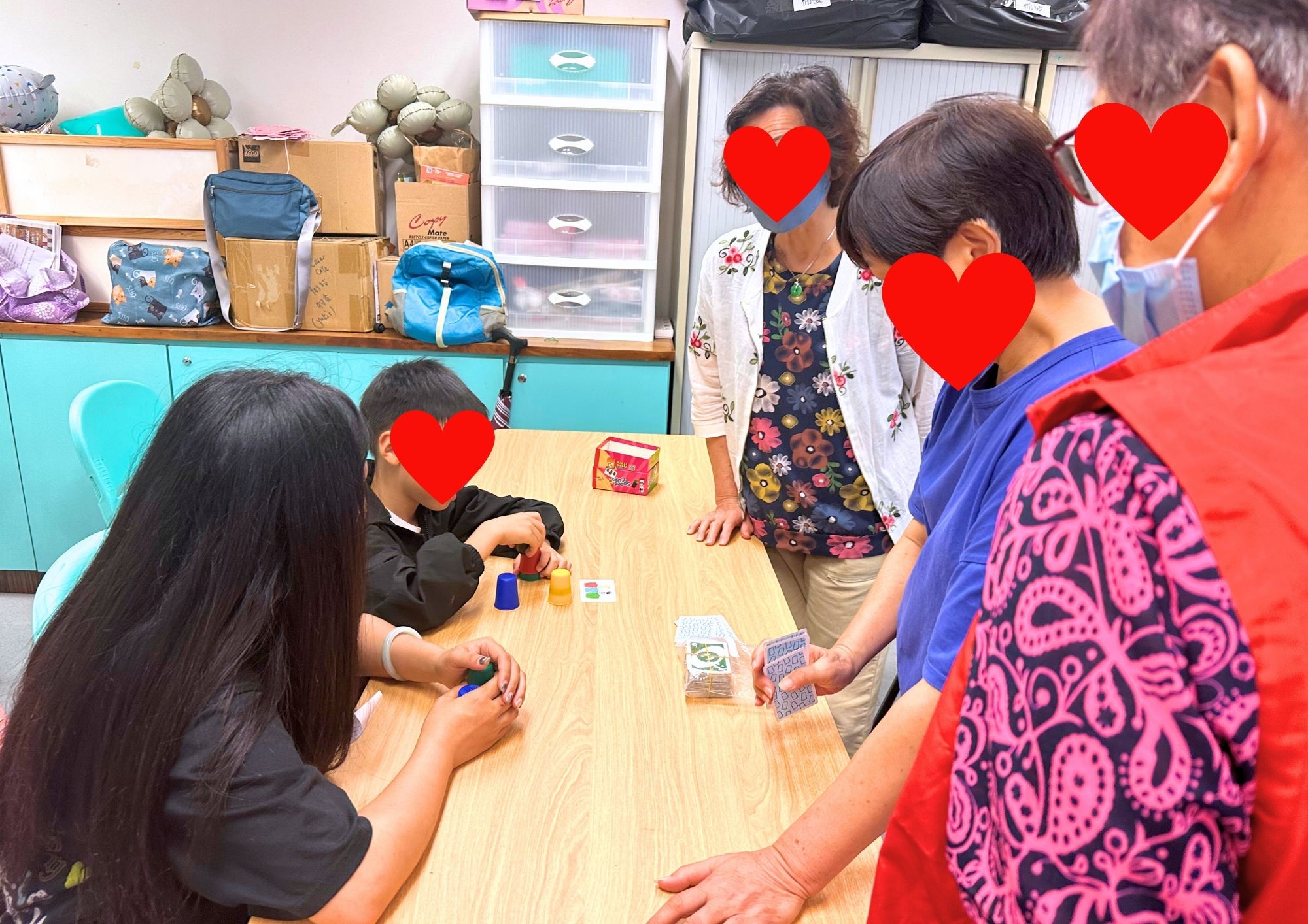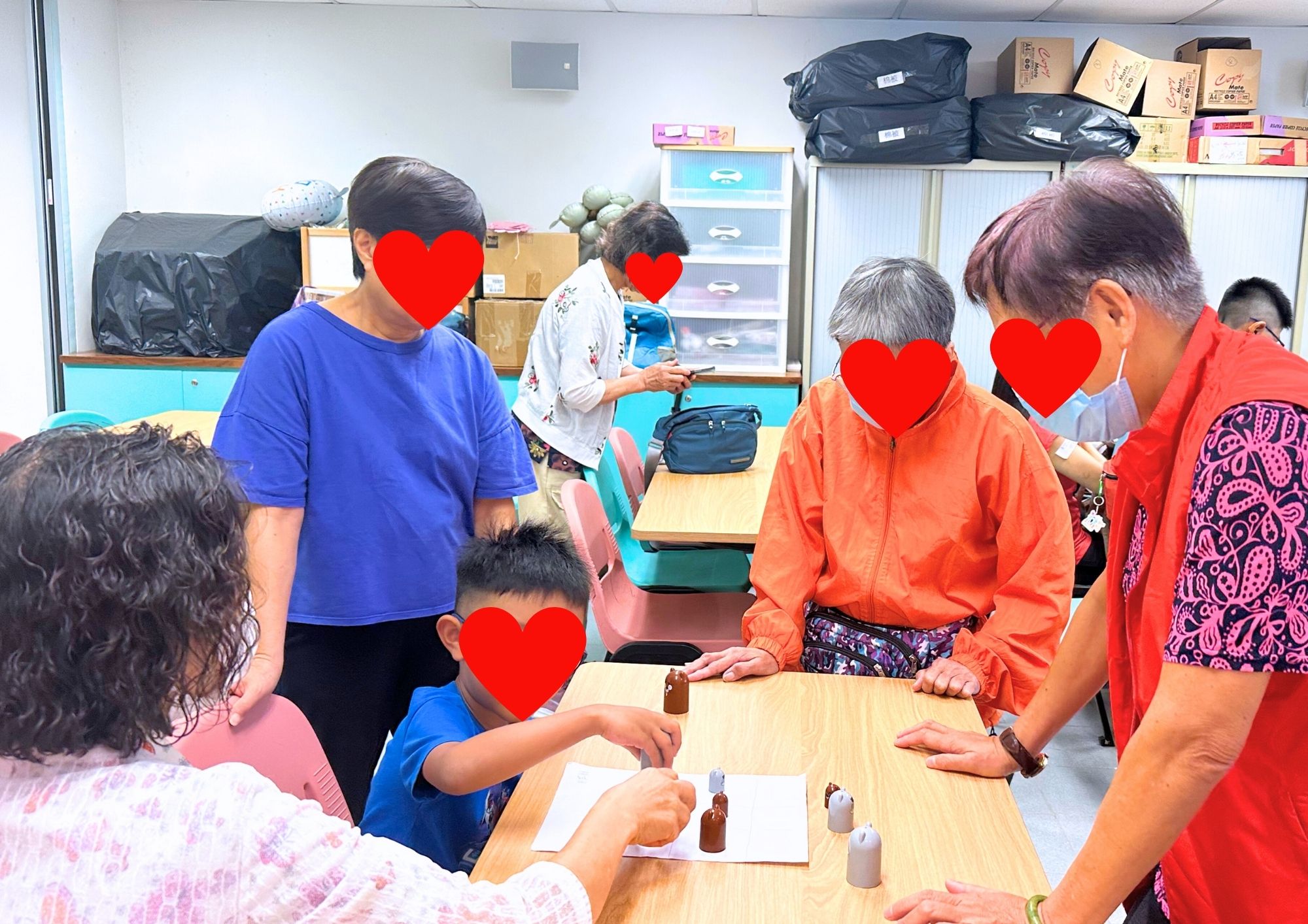 社區銀齡義工學習與有特殊教育需要的兒童進行小組活動