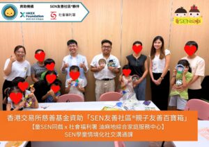 感謝香港交易所慈善基金資助,童SEN同戲開展「SEN友善社區®親⼦友善百寶箱」服務計劃。為推動SEN友善社區®在各地區落地生根,童SEN同戲第三站來到油尖旺區,連同政府服務單位社會福利署 油麻地綜合家庭服務中心合辦「SEN友善社區®SEN學童情境化社交溝通課」,融合油尖旺區兒童熟悉的社區情境,拓展至語言、情緒、社交、讀寫、專注、創意等6大主題,從⽽提升有特殊教育需要學童從社區中學習、從社區中成長的友善體驗,加強學童與社區連接。