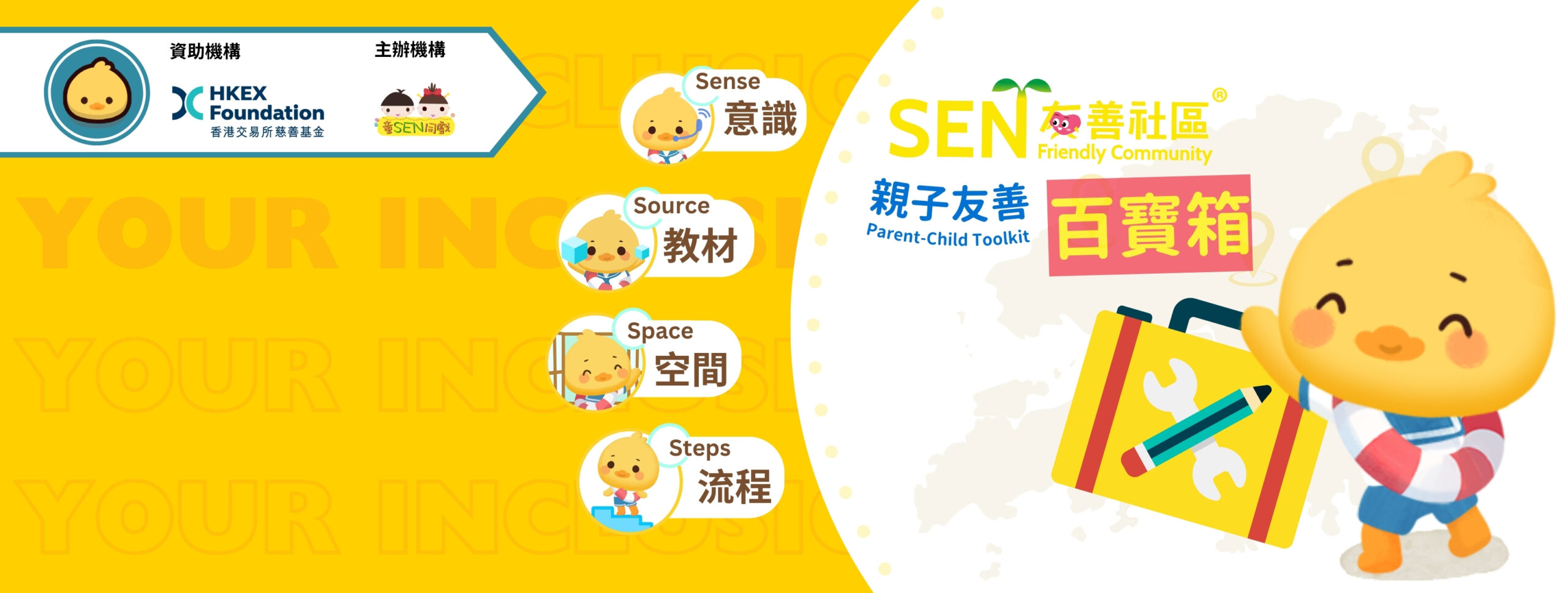 SEN友善社區®是達自讓每個SEN家庭自在參與社區生活的願景,童SEN同戲行政總監黃厚豐先生首創「FRIEND 協作模式」及「SEN友善社區®4S教學設計指引」,集合各界力量,應用Facilitate、Refine、Initiate、Expand、Networking、Demonstrate六大協作模式,為同理意識(SENSE)、教材設計(SOURCE)、空間佈置(SPACE)、服務流程(STEPS)注入共融動力,支援有特殊教育需要的兒童及家長,共創SEN友善社區®。