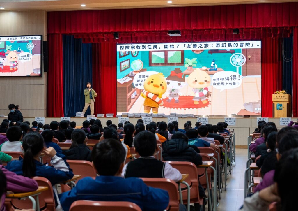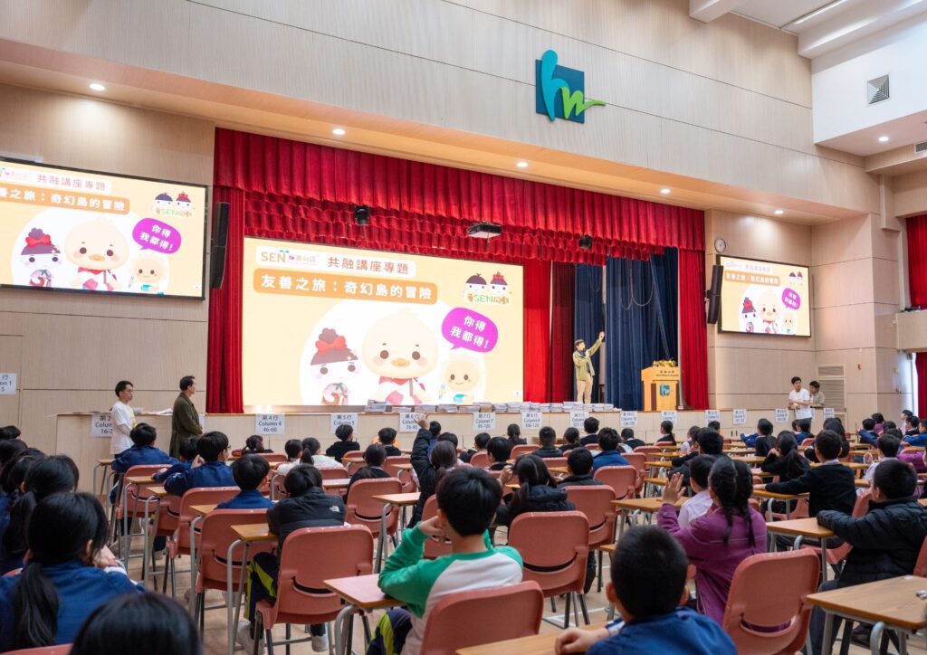 童SEN同戲到訪位於港島東小西灣的漢華中學(小學部),由資深言語治療師黃厚豐先生(黃Sir)帶領,為全校同學提供「共融之旅:奇幻島的冒險」互動遊戲講座,透過【友善繪本】得得探險家 – 太陽城歷險記的繪本故事,讓學生認識「友善三寶」,學習互相尊重及理解以建立更友善的社區,推動校園互助關愛文化。