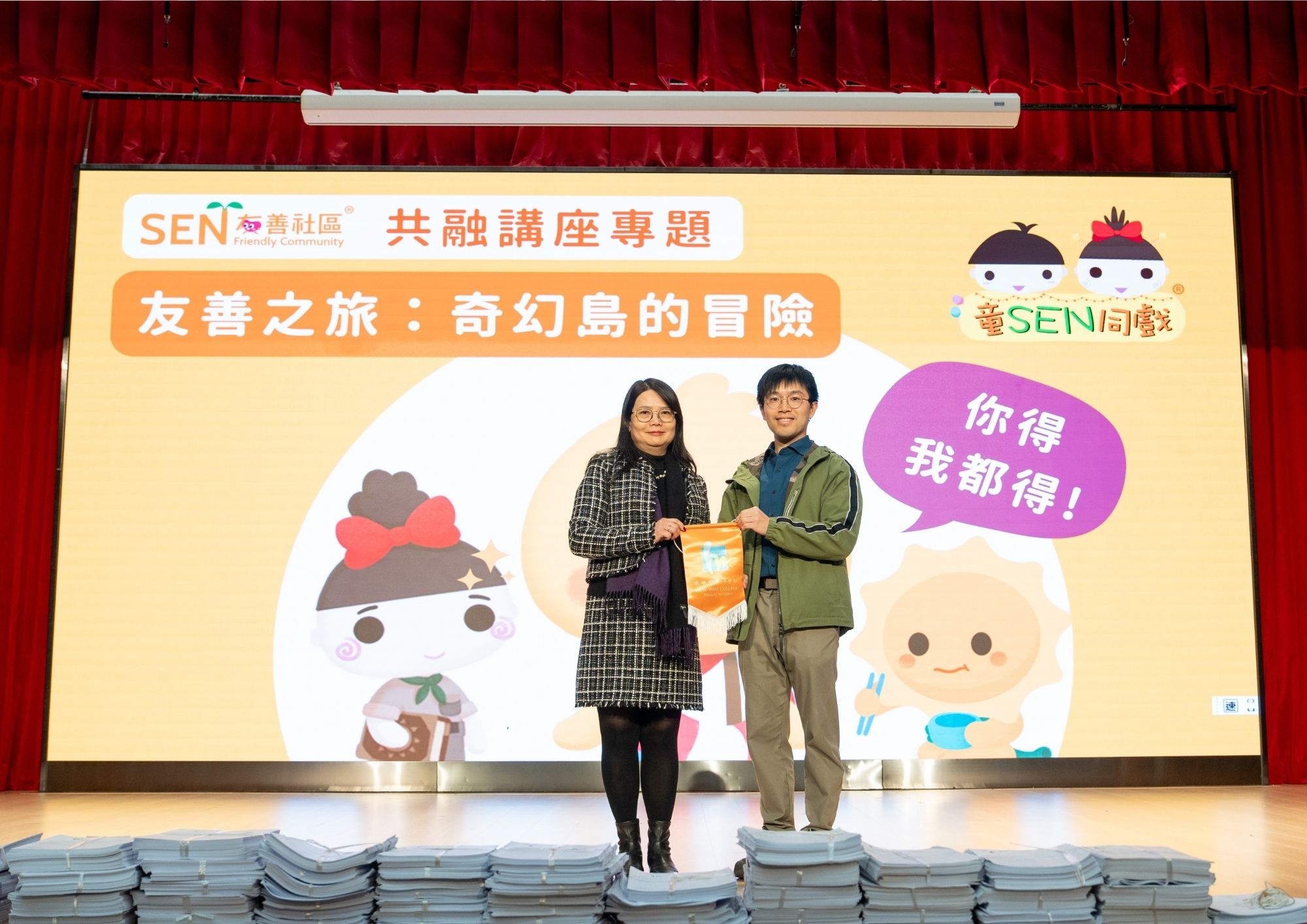 童SEN同戲到訪位於港島東小西灣的漢華中學(小學部),由資深言語治療師黃厚豐先生(黃Sir)帶領,為全校同學提供「共融之旅:奇幻島的冒險」互動遊戲講座,透過【友善繪本】得得探險家 – 太陽城歷險記的繪本故事,讓學生認識「友善三寶」,學習互相尊重及理解以建立更友善的社區,推動校園互助關愛文化。
